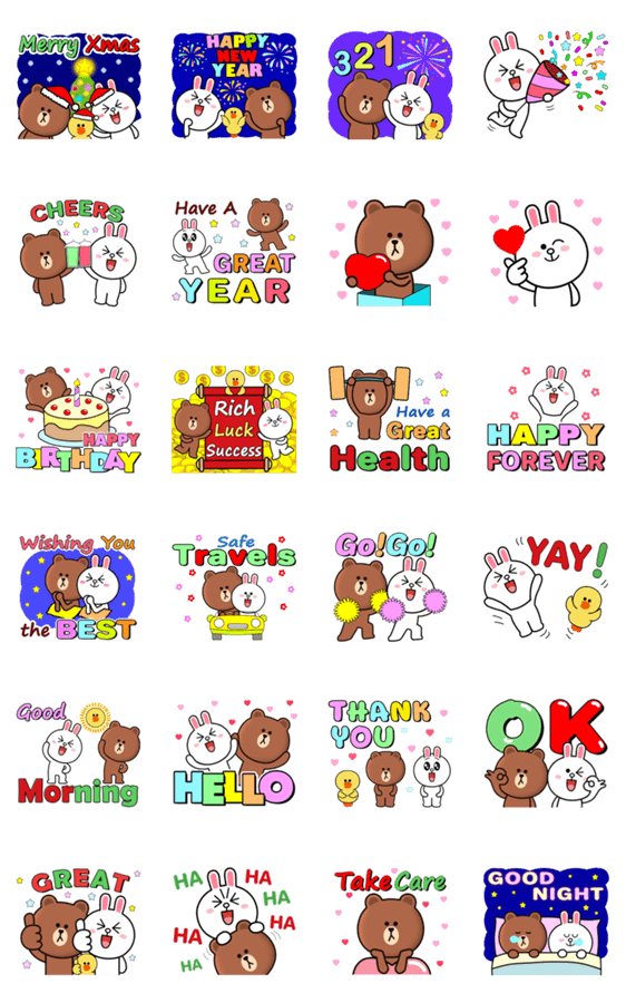 Comment: BROWN & FRIENDS Xmas NEW YEAR PopUps_Eng by PeakStudio. Brown, Cony & Sally animated big Pop Ups for Happy Holidays Festival & everyday : Merry Christmas, Happy New Year (HNY), Best Wishes on Birthday (HBD). Cheers! Part of the "Make stickers with BROWN & FRIENDS" collection.