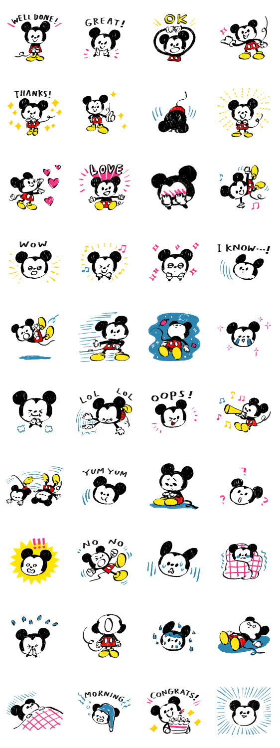 สติกเกอร์ลายเส้นวาดมือสุดละมุนจากมิคกี้ เมาส์ น่ารักน่าเอ็นดู มองแล้วสบายตา ใช้แล้วสบายใจ♪