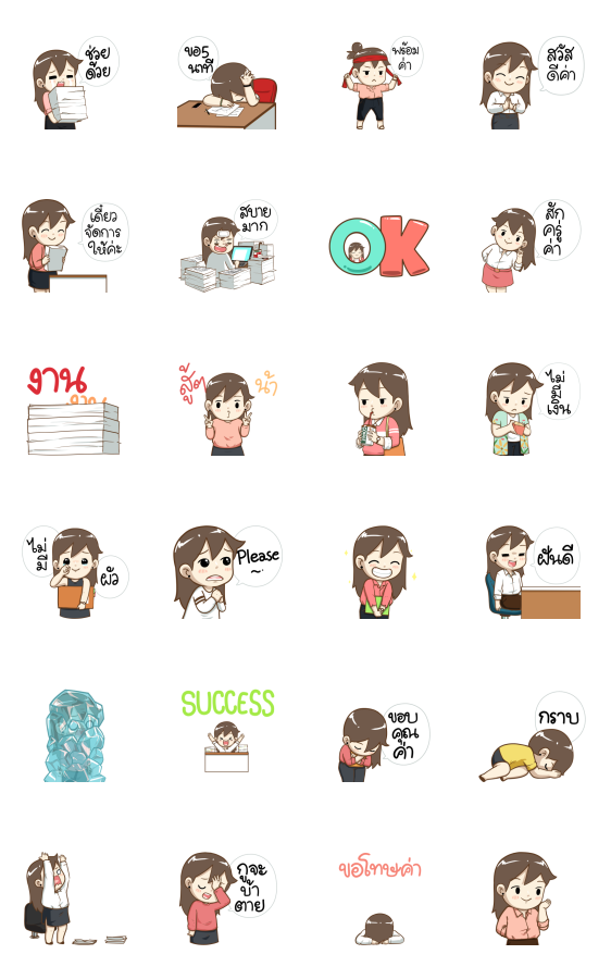 สติ๊กเกอร์ไลน์บุบบิบ ออฟฟิศเกิร์ล |