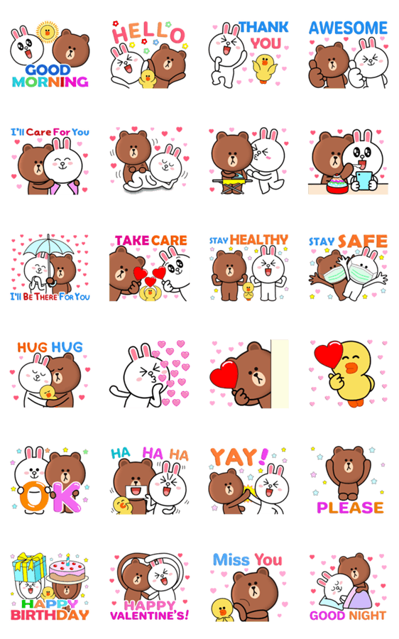 Comment: BROWN & FRIENDS LOVE and CARE PopUps_ENG by PeakStudio. Brown, Cony & Sally animated Big Pop Ups for daily greetings & blessings. Send happiness, love,care, Happy Birthday (HBD) wishes! Make everyday Valentine's Day! Part of the "Make stickers with BROWN & FRIENDS" collection.