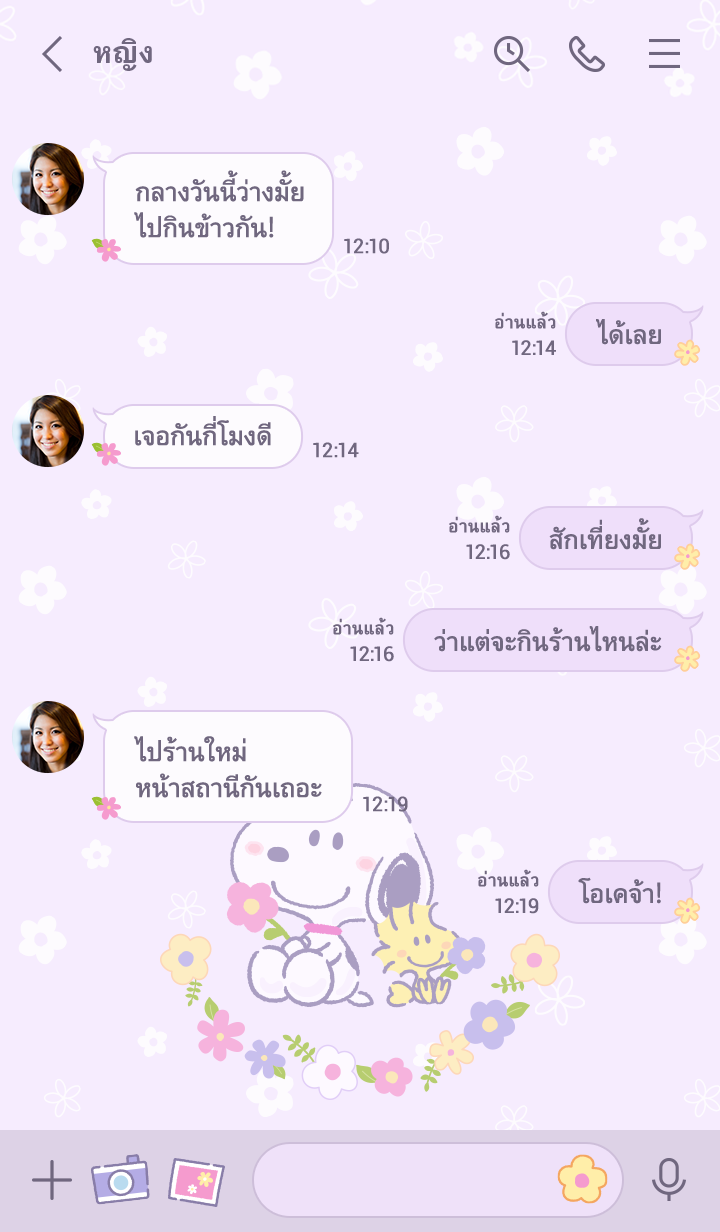 ธีม Snoopy นุ่มนิ่มน่ารักชุดที่ 3 Snoopy กับเพื่อนอยู่ท่ามกลางดอกไม้ สวยหวาน น่ารักที่สุด (จะมีการอัพเดตธีมเป็นระยะจนถึง 180 วันหลังสิ้นสุดการจำหน่าย)