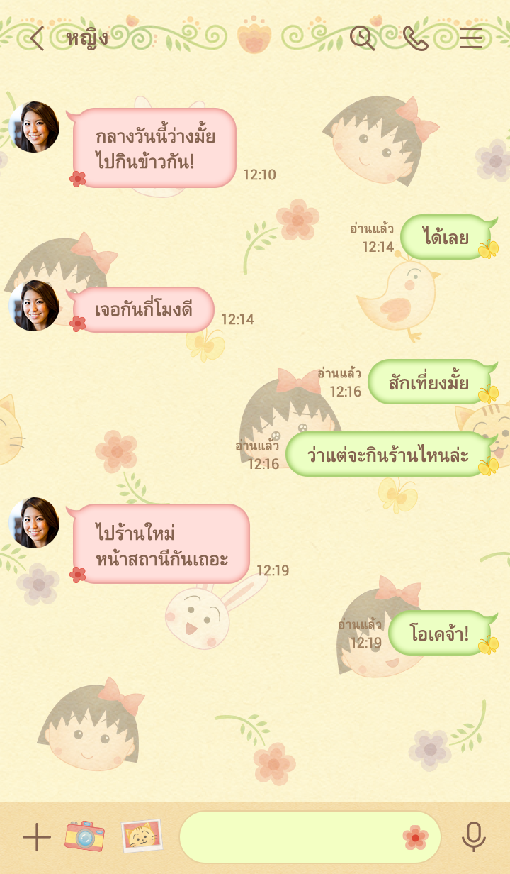 ธีมจิบิมารุโกะจังในโทนสีธรรมชาติสบายตา มาผ่อนคลายในสวนน่ารักด้วยกันนะ (จะมีการอัพเดตธีมเป็นระยะจนถึง 180 วันหลังสิ้นสุดการจำหน่าย)