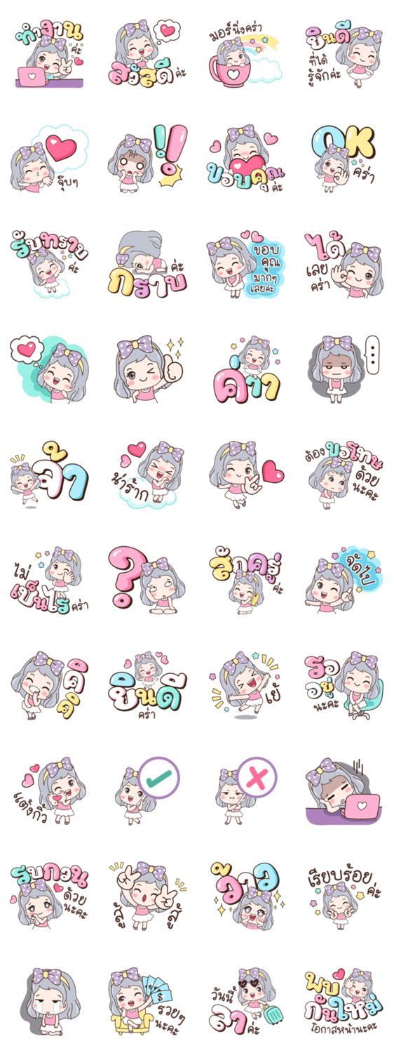 สวัสดี มอร์นิ่ง ยินดีที่ได้รู้จัก ขอบคุณ โอเค รับทราบ กราบ ได้เลย น่ารัก ขอโทษ ไม่เป็นไร สักครู่ จัดไป ยินดี เย้ รออยู่ แต้งกิ้ว รบกวนด้วย สู้ ว้าว เรียบร้อยค่ะ