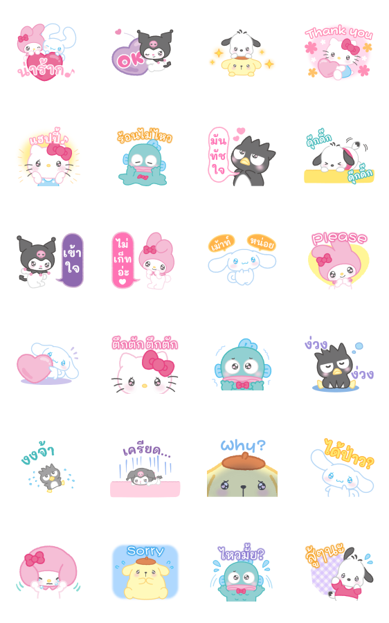 สติกเกอร์ตัวละครซานริโอแบ๊วจัดเต็มมาแล้ว♪ ตาแป๋วแหววซะขนาดนี้จะไม่หลงได้ยังไง โดนอ้อนด้วยสายตาแบบนี้ ไม่ว่าใครก็แพ้ทาง♪