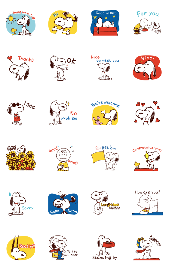 Comment: Snoopy Simple Greetings. Snoopy will help you chat your way through the day. This set's simple colors can find a place in any conversation.