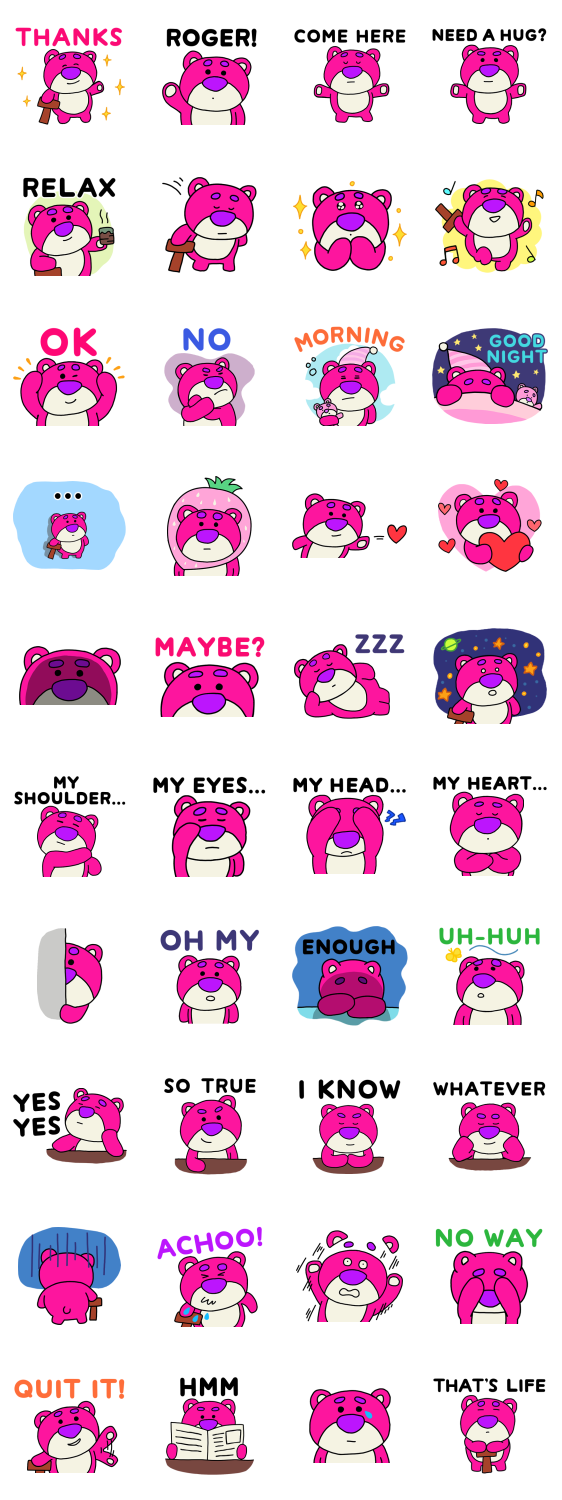 Comment: Lotso (Doodle Style). Lotso from the Toy Story series comes to you in an adorable doodle sticker set. He's here with a cuddly collection of expressions for every occasion!