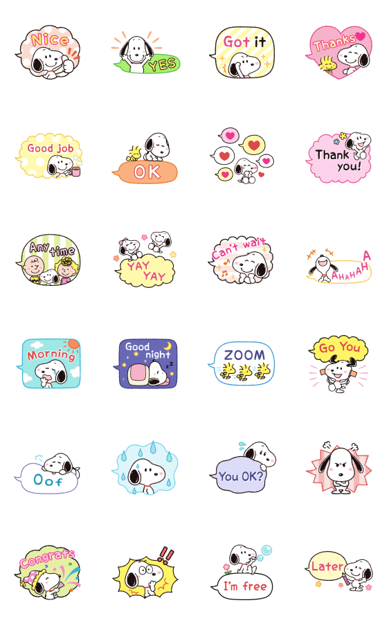 Comment: Animated Snoopy Speech Balloons. Snoopy brings you a set of speech balloon stickers! Reply in conversations with a single sticker while Snoopy moves around.