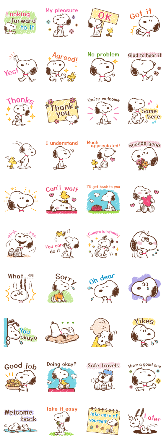 Comment: Polite Snoopy for All Occasions. These keigo stickers featuring Snoopy are easy for anyone to use. The polite phrases and art will come in handy often.