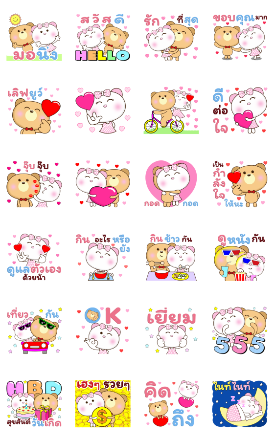 น้องหมีคู่เลิฟ สติกเกอร์ สีพาสเทล ป๊อปอัพ ใหญ่เต็มจอ ดุ๊กดิ๊ก มีเสียง น่ารัก ส่งทักทาย บอกรัก อ้อน ให้ทุกวัน คือ วันแห่งความรัก ทำกิจกรรมร่วมกัน อวยพร วันเกิด ส่งรัก ความห่วงใย ความสุข อบอุ่น ส่งกำลังใจ เชียร์ คำสุภาพ ส่งให้ได้ทุกคน ใช้ได้ทุกวัน :)
