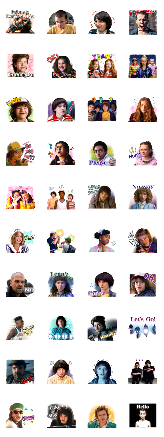 Comment: The explosive international hit Stranger Things finally comes to LINE stickers! All your favorite Hawkins residents are here and waiting to meet you in the Upside Down.