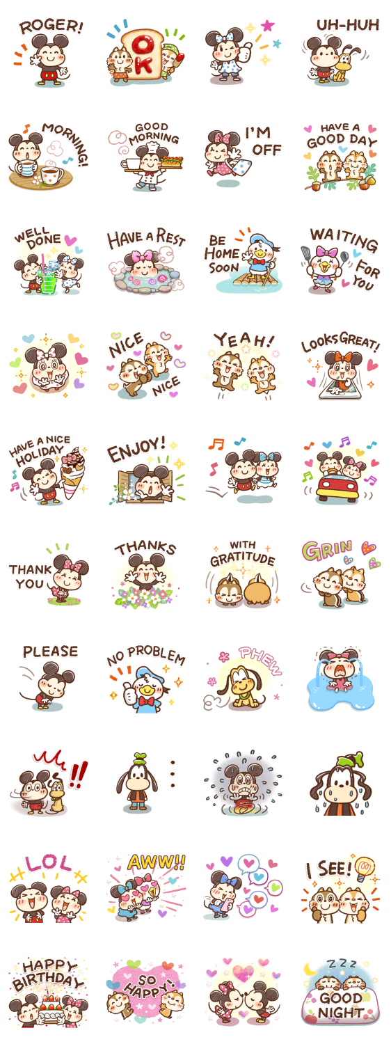 Comment: Mickey and Friends by Honobono. Check out these stickers by the popular illustrator Honobono. Mickey Mouse and friends are here to spread smiles throughout your chats!