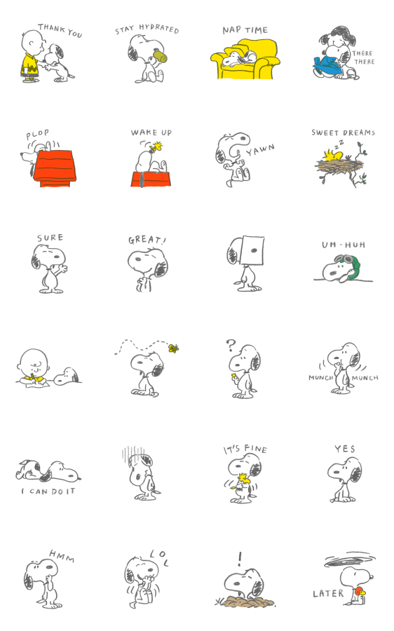 สติกเกอร์ Snoopy ในลายเส้นน่ารักแถมยังดุ๊กดิ๊กได้! น่ารักแบบชิลๆ เรียบง่ายใช้ได้ทุกโอกาส