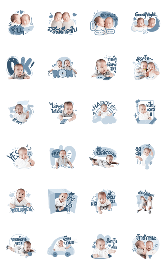 Comment: Thee & Phee twin babies. Hello, this is Thee and Phee. We are twins of Father Beam and MaMi Oil. Now, we transformed into stickers for everyone to download Don't forget to download.