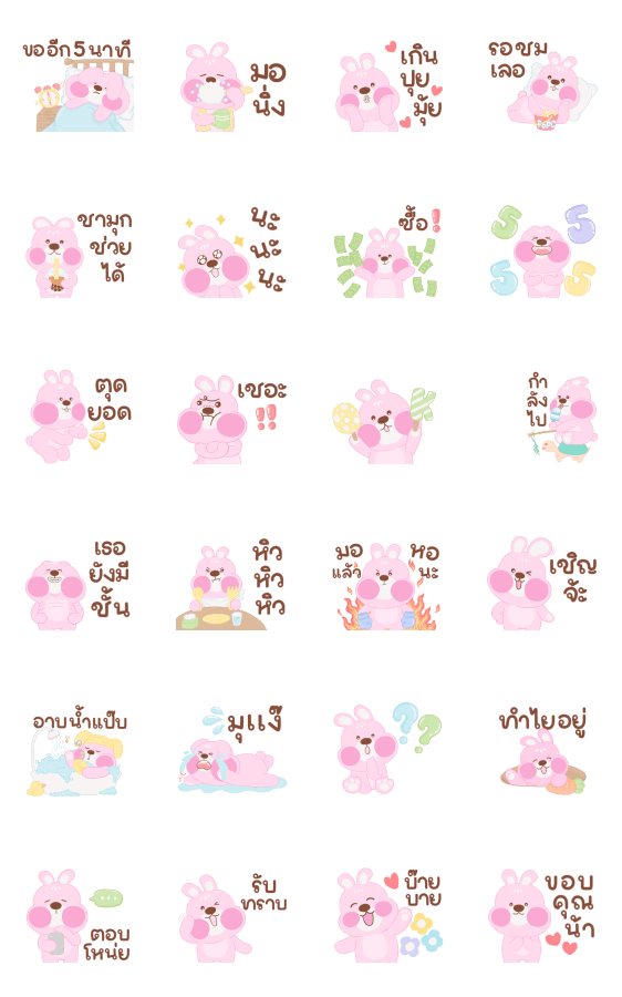 กระต่ายปุยฝ้าย สุดน่ารัก ร่าเริงสดใส สีพาสเทล ในรูปแบบอนิเมชั่น ขยับได้ ดุ๊กดิ๊ก มีเสียง คำใช้บ่อย ใช้ได้ทุกวันเลยจ้า