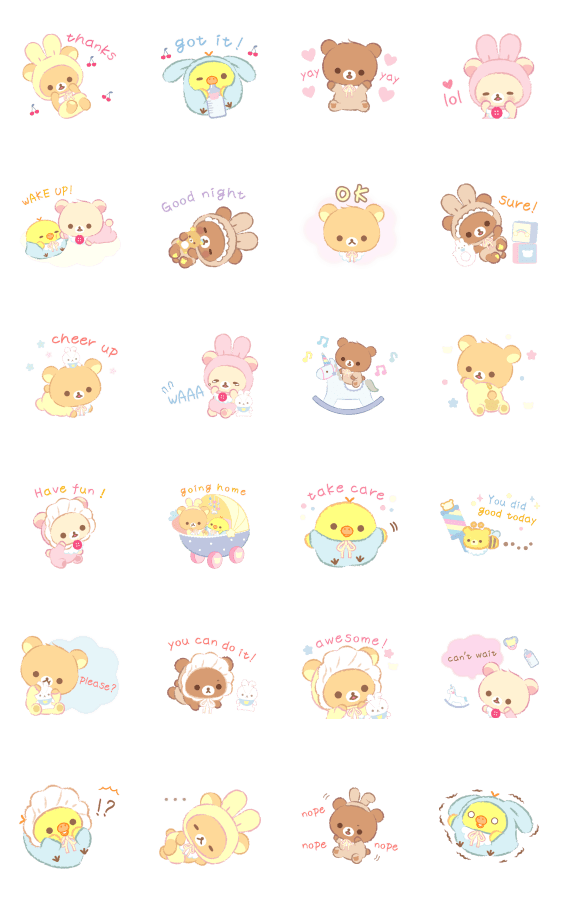 Comment: Rilakkuma: Usausababy Family. The adorable Rilakkuma and friends come to you as Usausababies. They're here to help you talk with family and send greetings every day!
