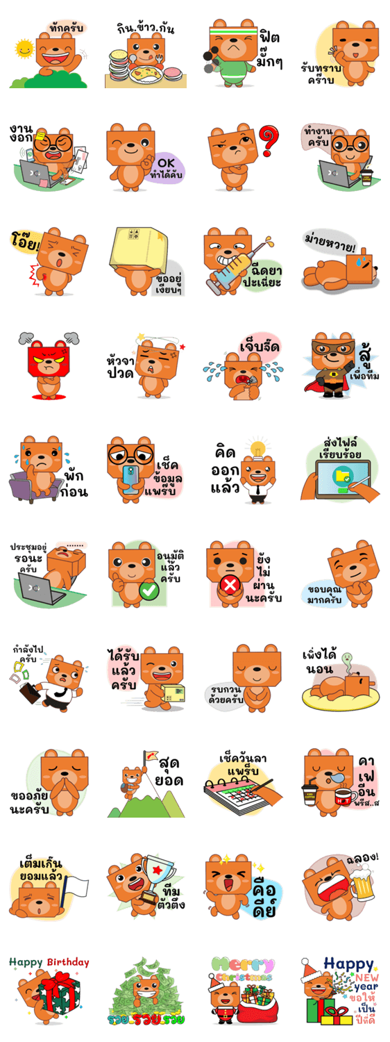 Comment: Bear Box in working zone. No matter how hard work is, we can still do it cuz we are diligent. Send LINE stickers to tell your teammates so they can enjoy the work we love even more!