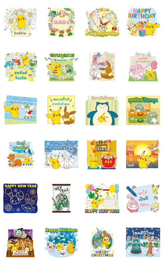 เหล่าโปเกมอนพร้อมกระโดดออกมาหาคุณแล้ว! สติกเกอร์สไตล์การ์ดข้อความที่พิคาชูและเพื่อน ๆ จะมาส่งข้อความอวยพรหรือทักทายในเทศกาลต่าง ๆ แทนคุณ