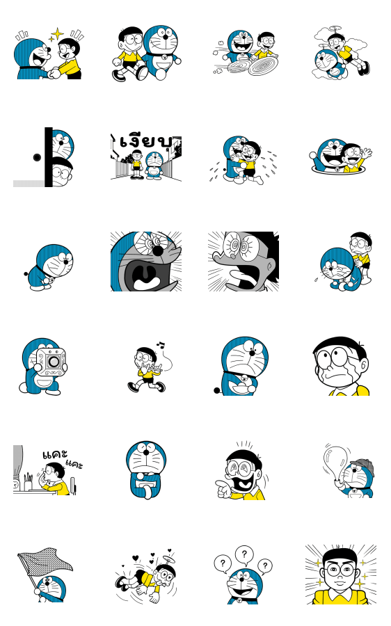 Comment: Doraemon's Silent Animations. Use pictures to convey your emotions! These stickers might not have words, but they're packed with feeling. Doraemon and Nobita have an expression for every situation!