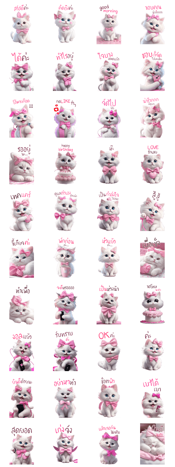 แมวสีขาว จ้าวเสน่ห์ น่ารัก สดใส บิ๊กสติกเกอร์ มาแล้วจร้า * บิ๊กสติกเกอร์จะแสดงในห้องแชทด้วยขนาดที่ใหญ่กว่าสติกเกอร์ทั่วไป