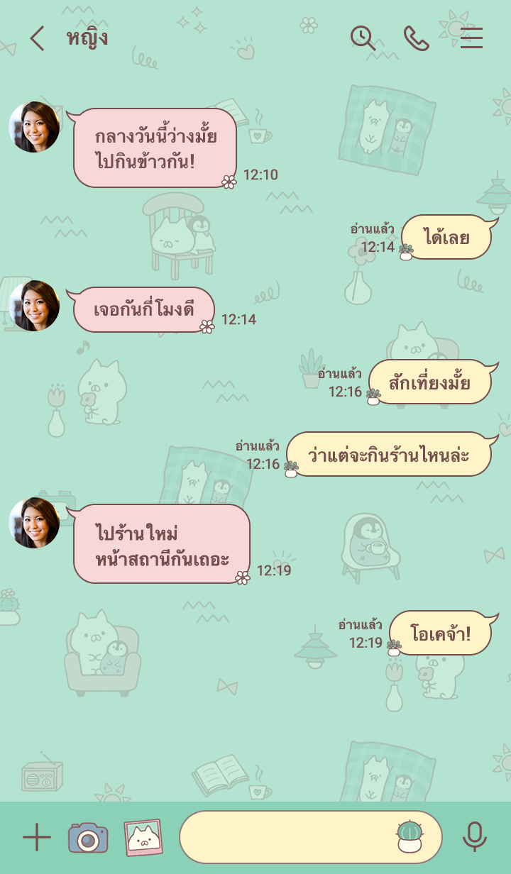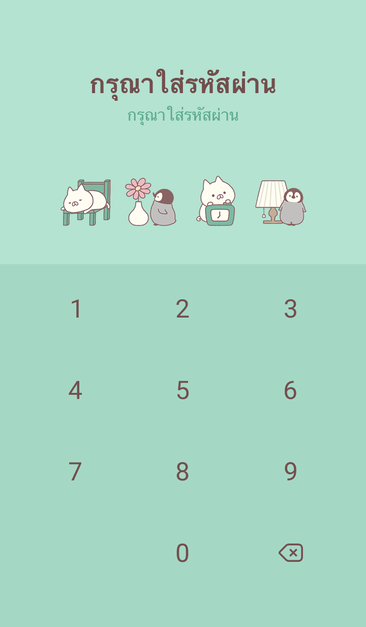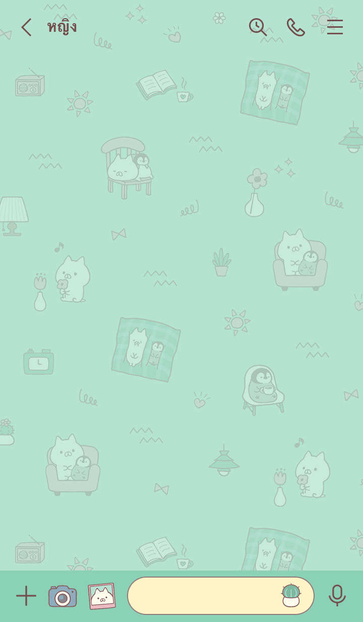 เจ้าเหมียวและเพนจังพักผ่อนสบายในห้องน่ารักบนพื้นหลังสีเขียวสดใส♪ (จะมีการอัพเดตธีมเป็นระยะจนถึง 180 วันหลังสิ้นสุดการจำหน่าย)