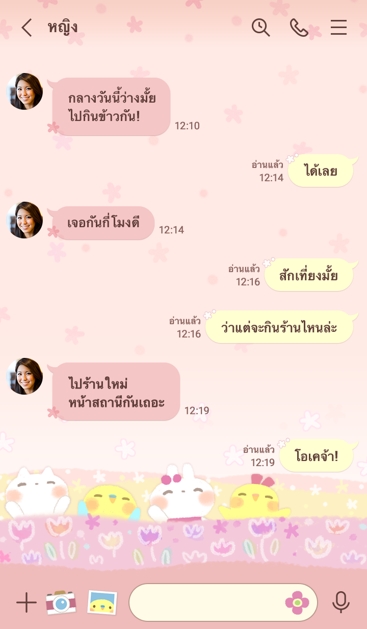 เหล่าเพื่อนรักแสนดีกำลังเล่นสนุกกันในทุ่งดอกไม้ ใช้งานง่าย โทนสีสบายตา♪ (จะมีการอัพเดตธีมเป็นระยะจนถึง 180 วันหลังสิ้นสุดการจำหน่าย)