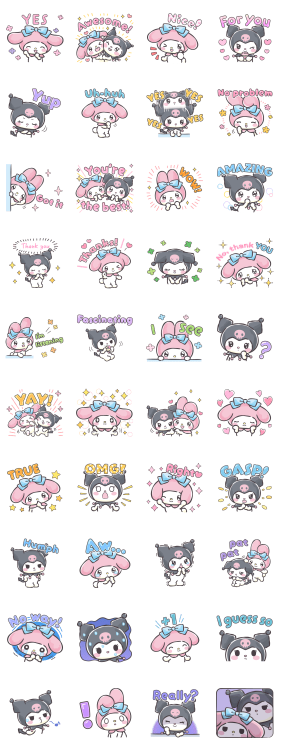 Comment: My Melody & Kuromi Art of Responding. My Melody and Kuromi are here to teach you the secrets of responding in ways that'll cuten up all your conversations. Anyone can use these stickers!
