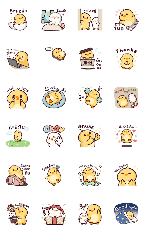 Comment: Little duck: Good morning. A little yellow duck comes with a little white duck. Send messages every day with these cute and bright stickers.