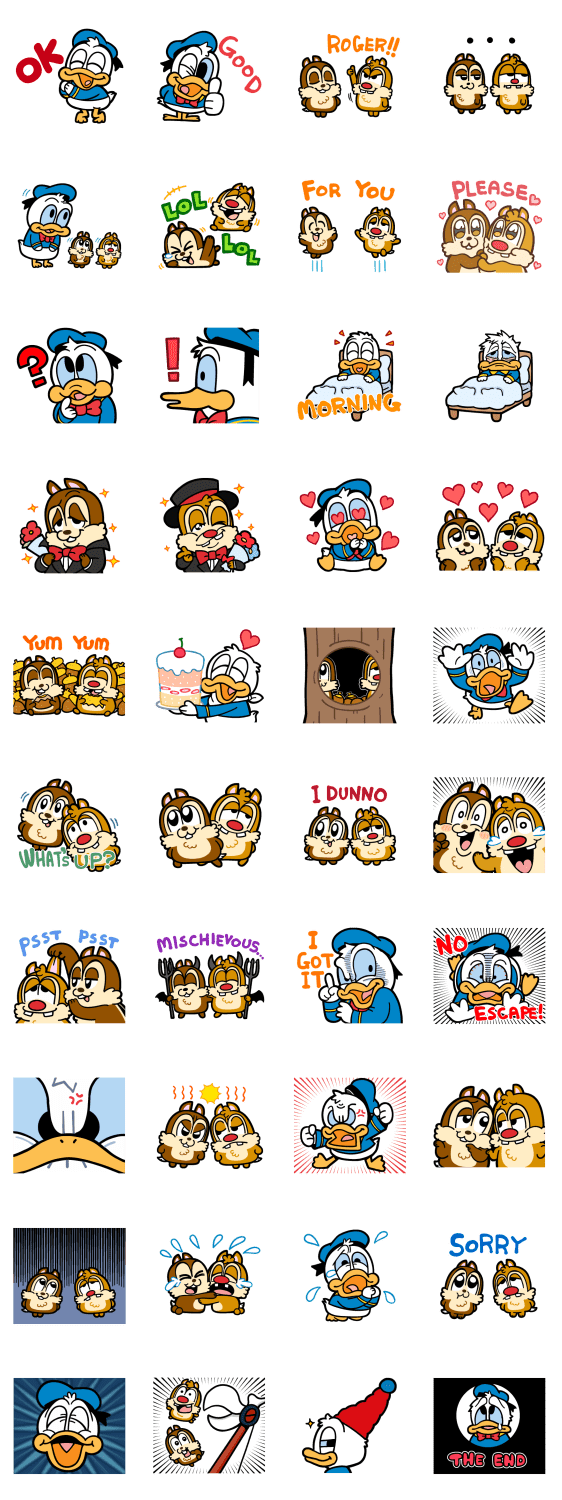 Comment: Donald Duck & Chip 'n' Dale by Bkub. The popular illustrator Bkub brings you a sticker set starring Donald Duck and Chip 'n' Dale. These adorable stickers of nostalgic scenes are sure to bring a smile to your face.