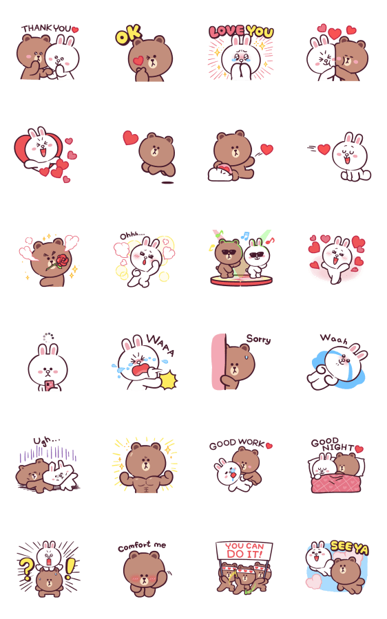 Comment: LINE FRIENDS Full of Love. These sweetly colored stickers starring the LINE FRIENDS are too cute! Send your love with BROWN and CONY!