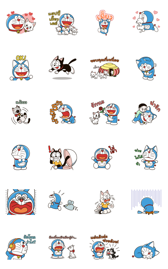 Comment: DORAEMON & Tons of Moving Cats Stickers. The DORAEMON & Tons of Cats sticker set gets powered up! The beloved DORAEMON stars in this collection of adorable scenes. Let these cats bring some paws-itive energy to your chats!