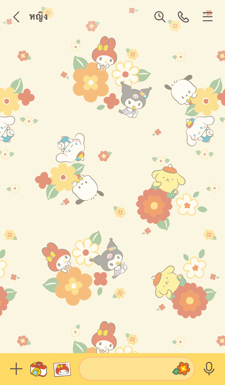ธีมไลน์Hello Kitty ลายสัตว์สีเบจ |