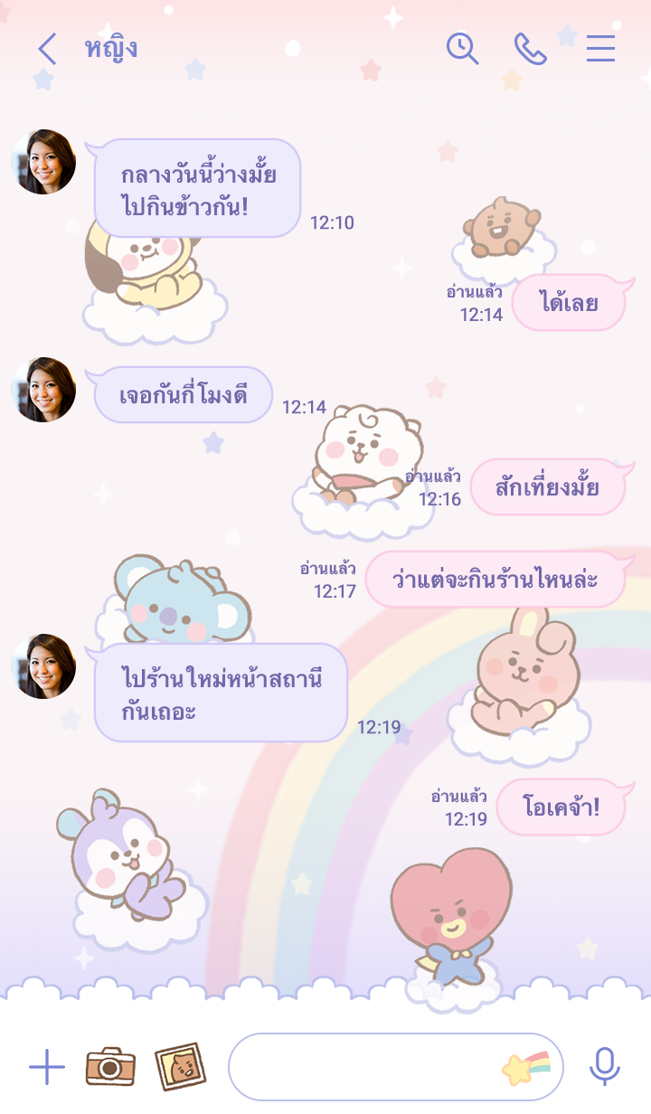 BT21 BABY ฝันหวานถึงภาพอนาคตสีรุ้งสดใส♪ สีพาสเทลไล่เฉดสวย อ่านแชทง่ายสบายตา (จะมีการอัพเดตธีมเป็นระยะจนถึง 180 วันหลังสิ้นสุดการจำหน่าย)