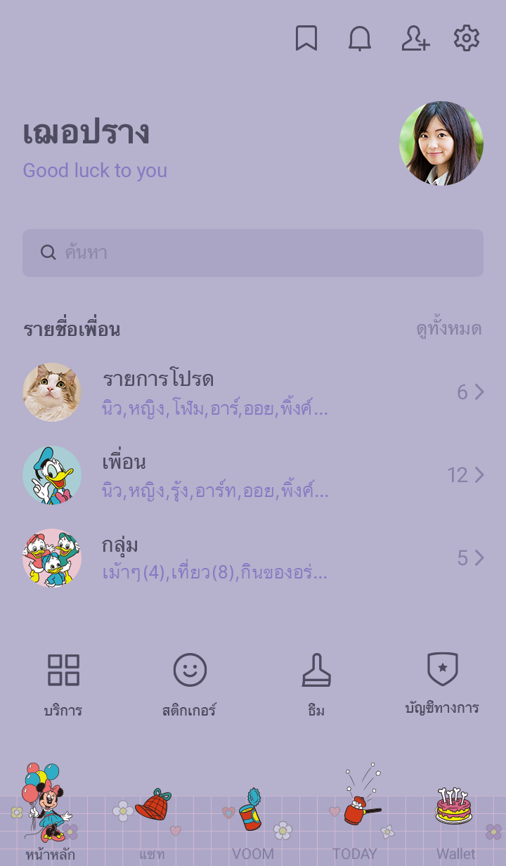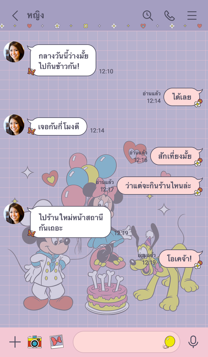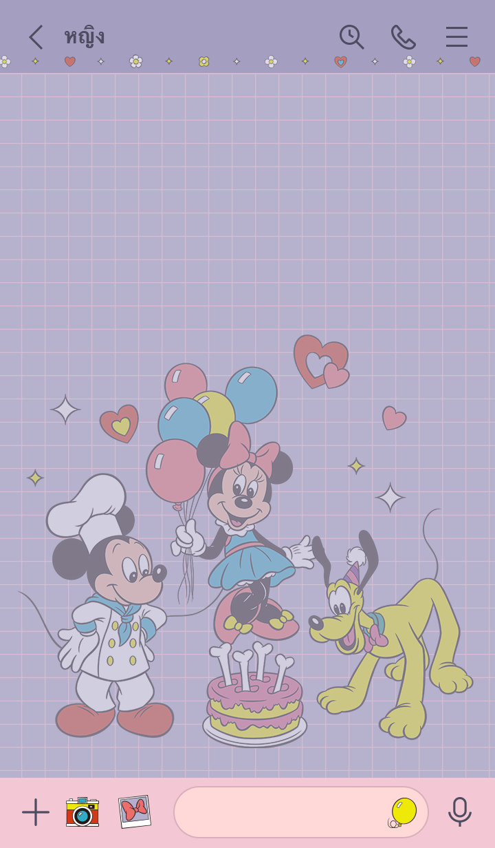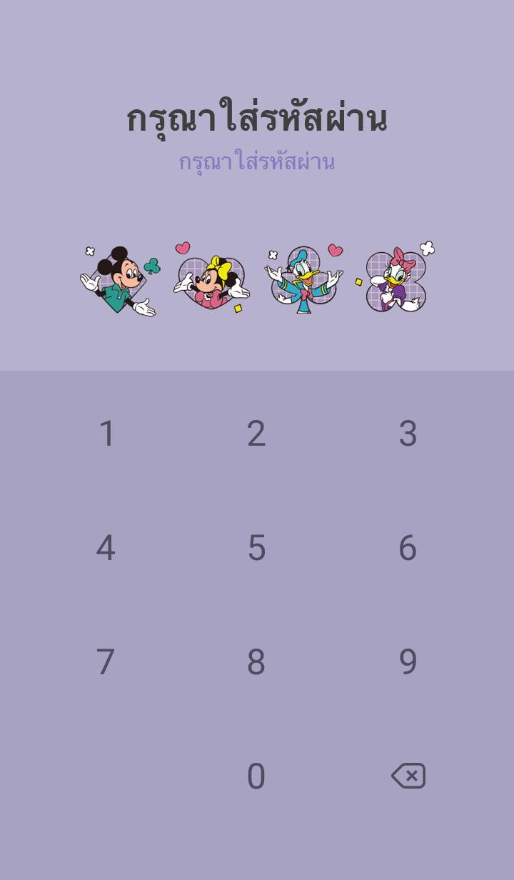 พบกับธีม Mickey & Friends ในโทนสีม่วงเรโทรน่ารัก ผสมผสานกับลายตาราง ได้เป็นธีมเก๋เกินใคร (จะมีการอัพเดตธีมเป็นระยะจนถึง 180 วันหลังสิ้นสุดการจำหน่าย)