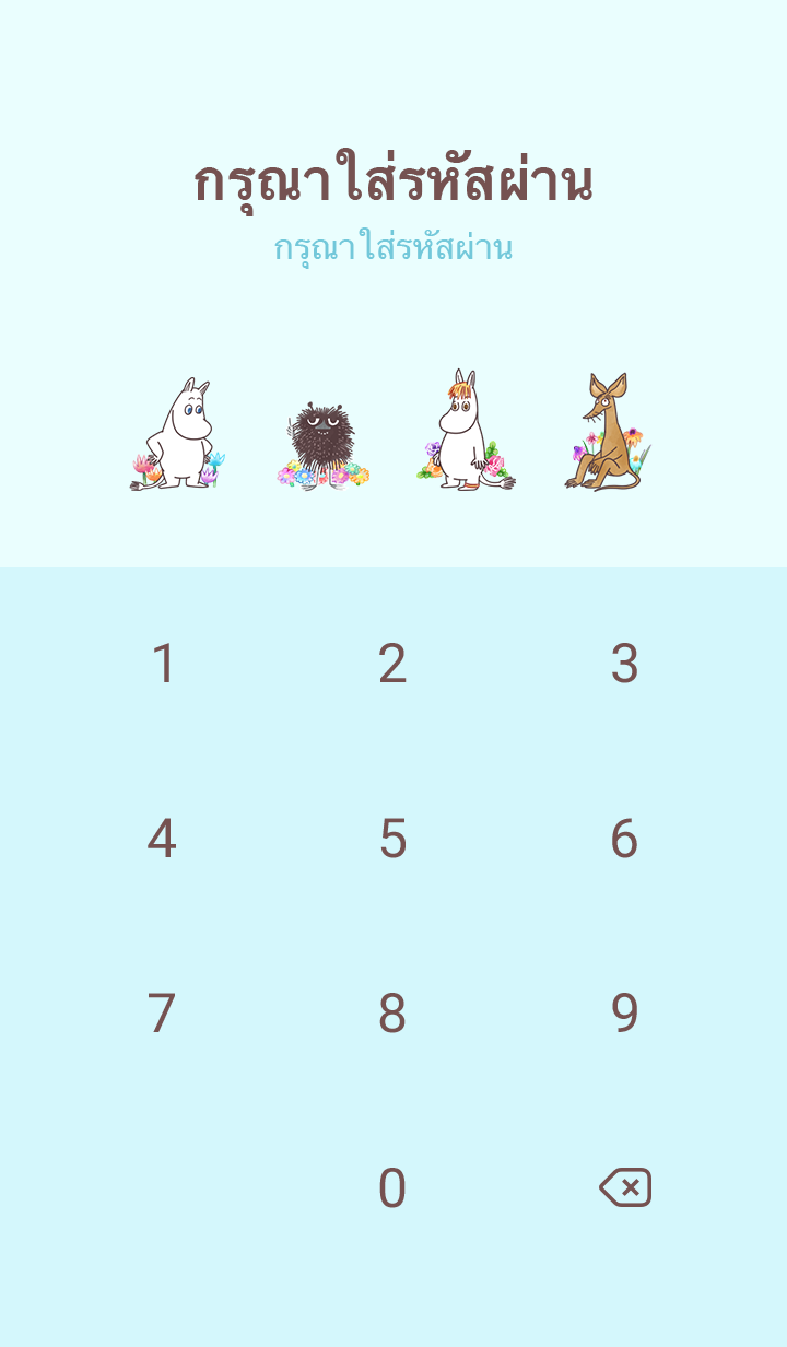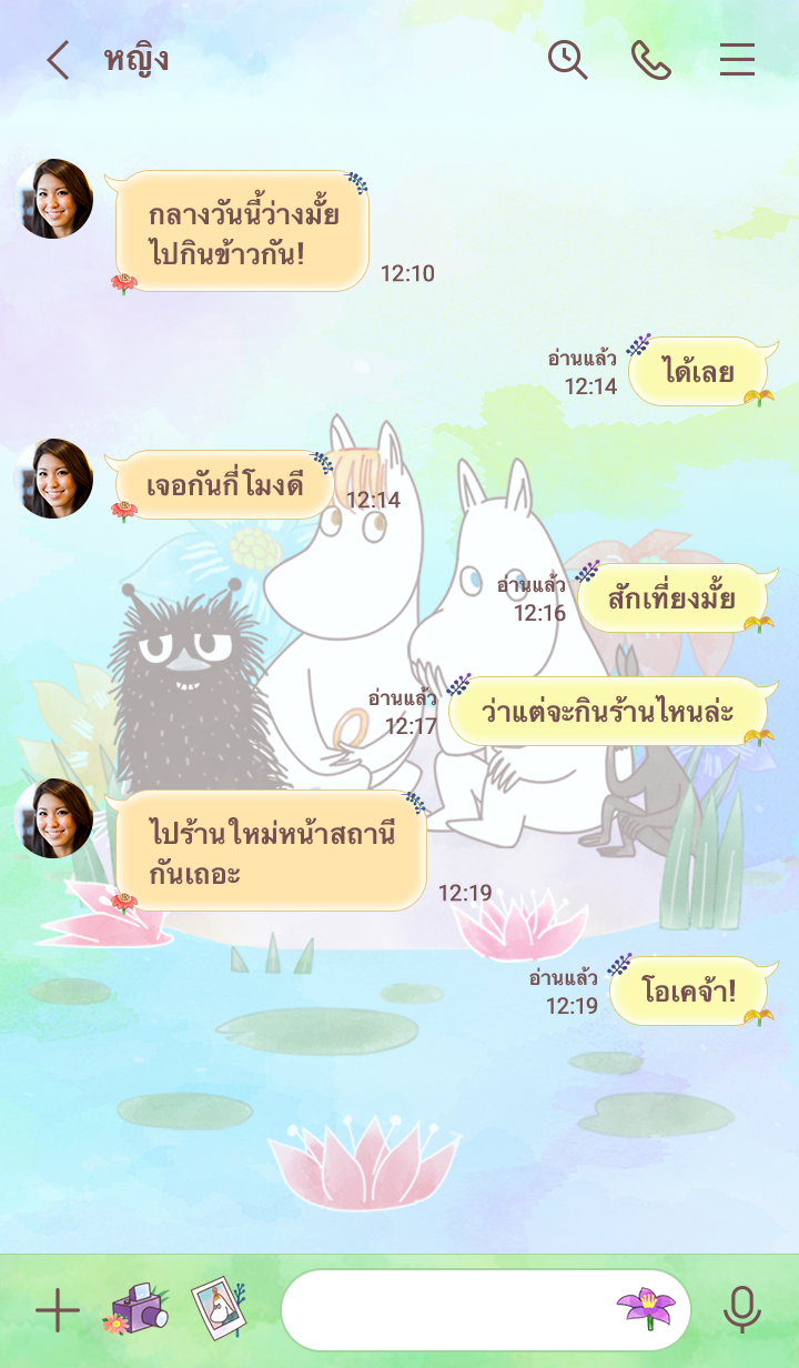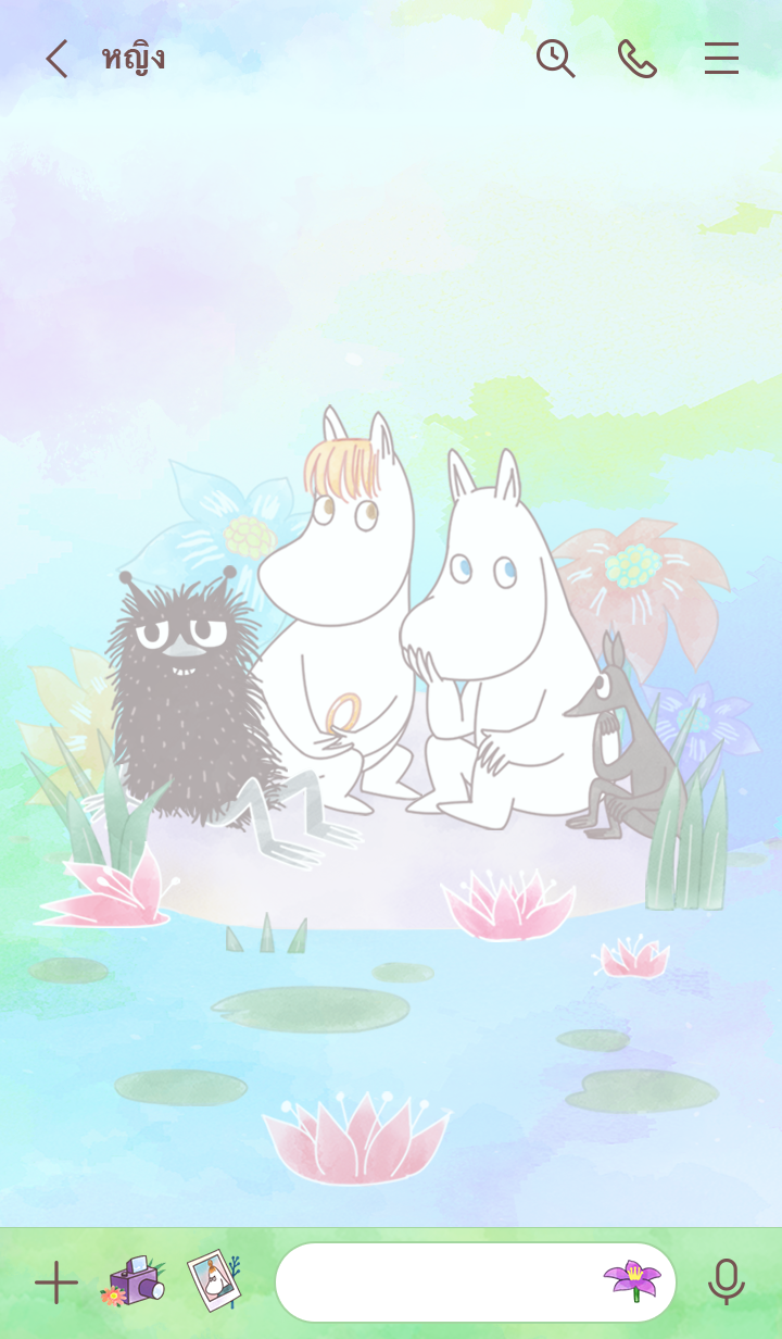 มูมินและผองเพื่อนพูดคุยกันสนุกสนานท่ามกลางดอกไม้♪ วันนี้ Stinky, Sniff กับ Sofus ก็มาด้วยนะ! สีสันละมุนตา เห็นแล้วผ่อนคลายสบายใจ (จะมีการอัพเดตธีมเป็นระยะจนถึง 180 วันหลังสิ้นสุดการจำหน่าย)