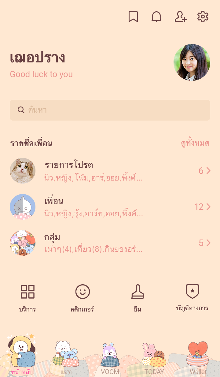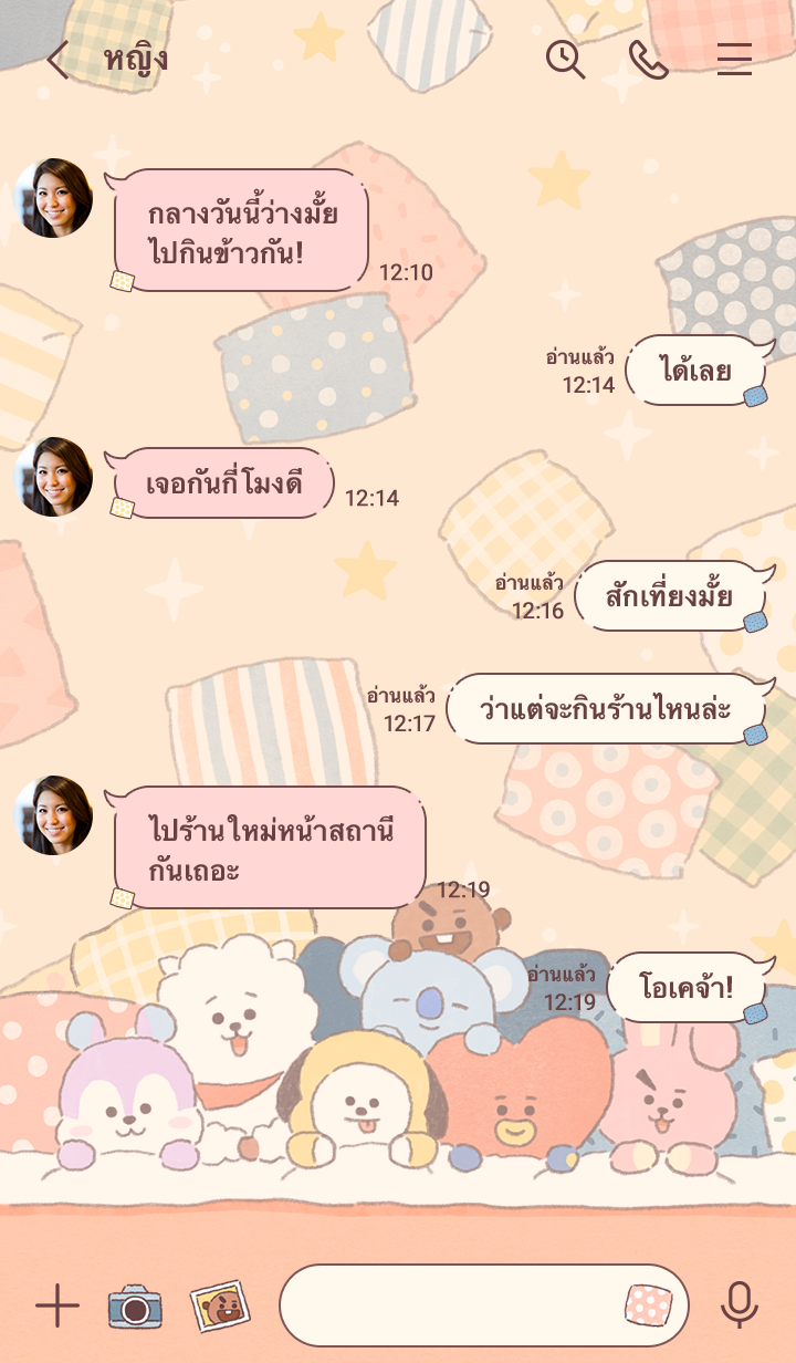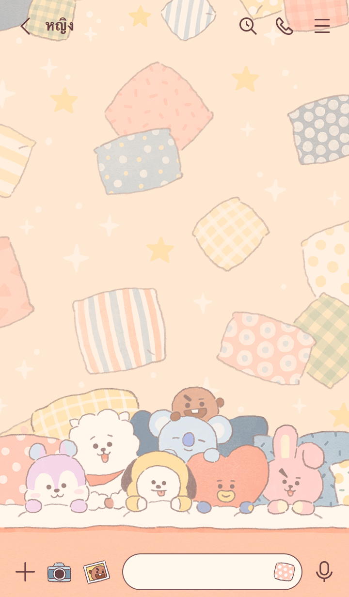 ชาว BT21 คุยกันท่าทางน่าสนุกก่อนนอน♪ หมอนหลากสีน่ารักซะขนาดนี้ ช่วยสร้างสีสันให้ห้องแชทได้แน่นอน (จะมีการอัพเดตธีมเป็นระยะจนถึง 180 วันหลังสิ้นสุดการจำหน่าย)