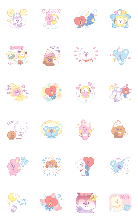 Comment: Let's go on a trip♪ BT21 On the Cloud. BT21 on cloud for a bestie trip! Meet them as cute, cuddly stickers. Play in a soft dreamy world♪