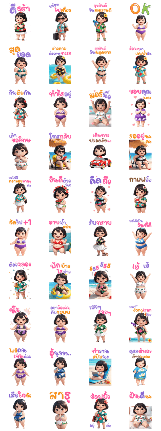 สติกเกอร์ชุด จ้ำม่ำ ❤️ หน้าร้อน สงกรานต์ (บิ๊ก) มาแล้ว ซัมเมอร์นี้ซื้อไว้แชทกันได้เลย * บิ๊กสติกเกอร์จะแสดงในห้องแชทด้วยขนาดที่ใหญ่กว่าสติกเกอร์ทั่วไป
