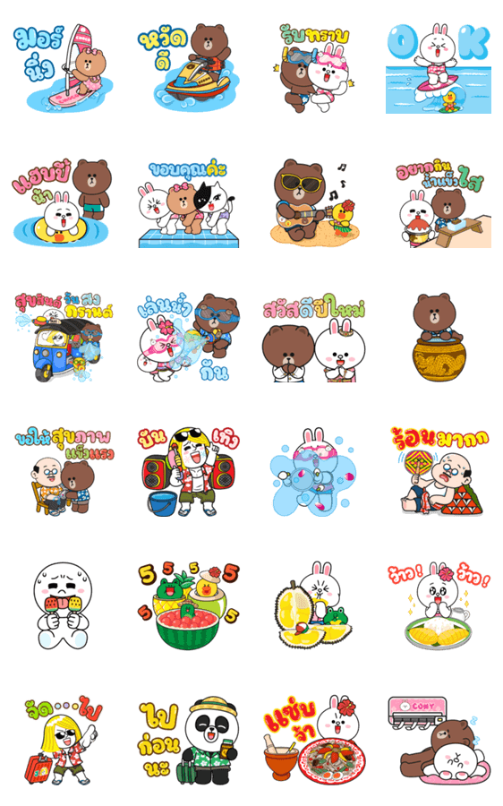 สวัสดี ฤดูร้อน ร้อนมากๆ ของไทย มาสนุก มาคลายร้อนกับเทศกาลสงกรานต์ เที่ยวทะเล ผลไม้ในหน้าร้อนไทยกัน * สติกเกอร์ในแคมเปญ "มาสร้างสติกเกอร์ BROWN & FRIENDS กัน!"