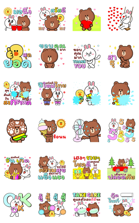 ซัมเมอร์ เทศกาล สุขสันต์วัน สงกรานต์ อวยพร สวัสดี ปีใหม่ไทย แฮปปี้ วันเกิด สนุก ทุกวัน วันหยุดยาว ฤดูร้อน กับ บราวน์ และเพื่อนๆ โคนี่ แซลลี่ ดุ๊กดิ๊กเต็มจอ สดใส * สติกเกอร์ในแคมเปญ "มาสร้างสติกเกอร์ BROWN & FRIENDS กัน!"