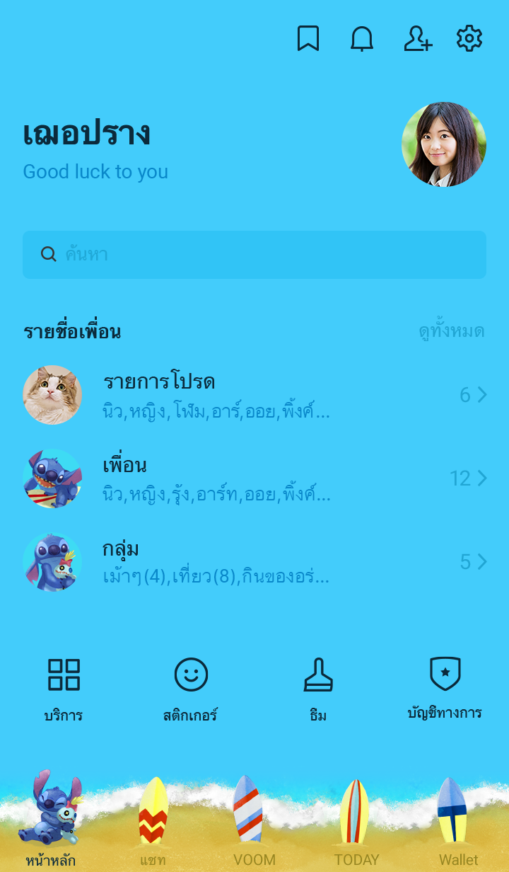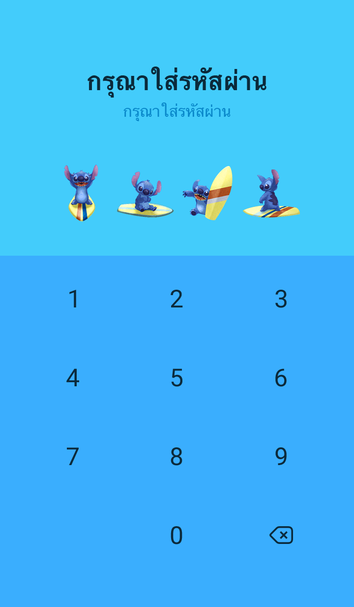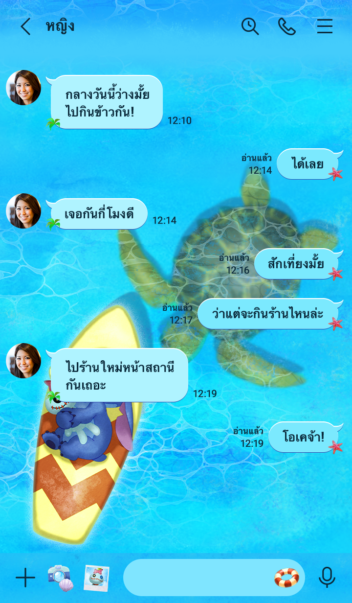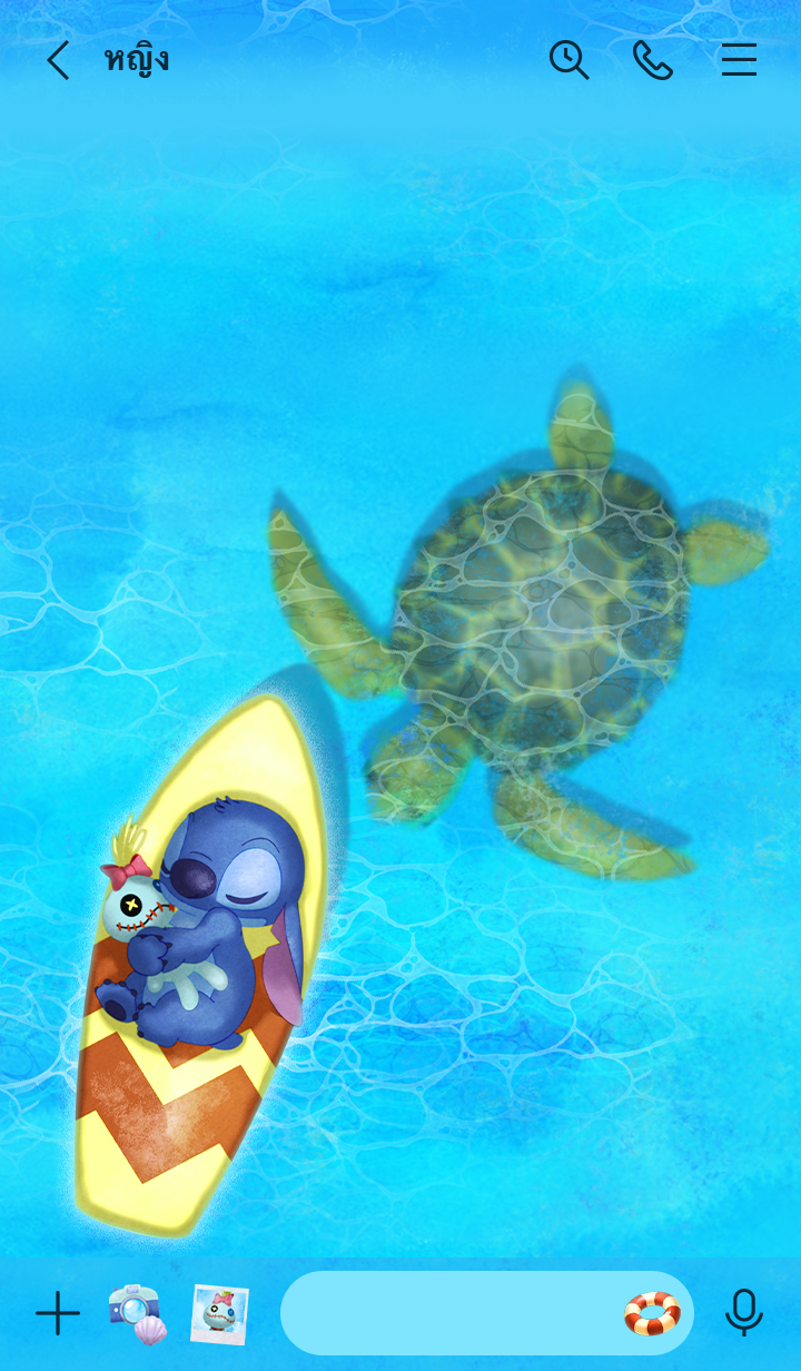 Comment: Stitch (Summer Beach Vibes). This new Stitch theme is perfect for the summer! Enjoy the refreshing summer breeze along with Stitch and Scrump and make some summer memories! Updates supported for 180 days after sales end. ธีมไลน์สีฟ้า น้ำทะเล