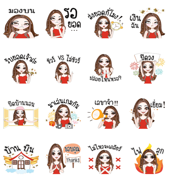 สติ๊กเกอร์ไลน์ชม้อยศรี แม่หญิงยุคใหม่ พูดคำโบราณ |
