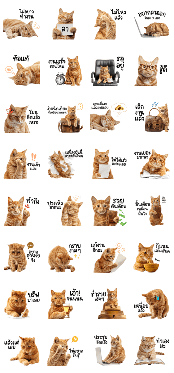 สติกเกอร์กวนๆ สำหรับคนรักแมวส้ม เวอร์ชันความในใจของคนขี้เกียจทำงาน