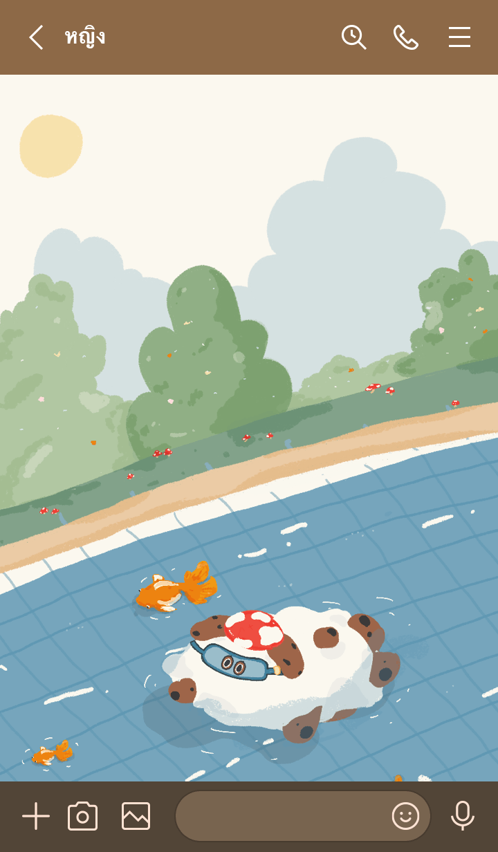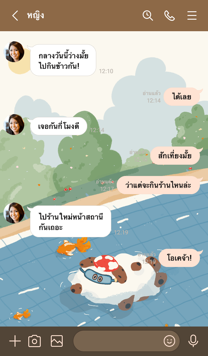 ธีมไลน์คุณหมีกับเจ้าเหมียว : วันฝนพรำ : |
