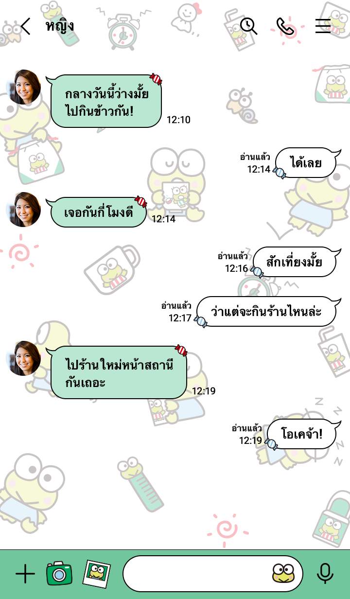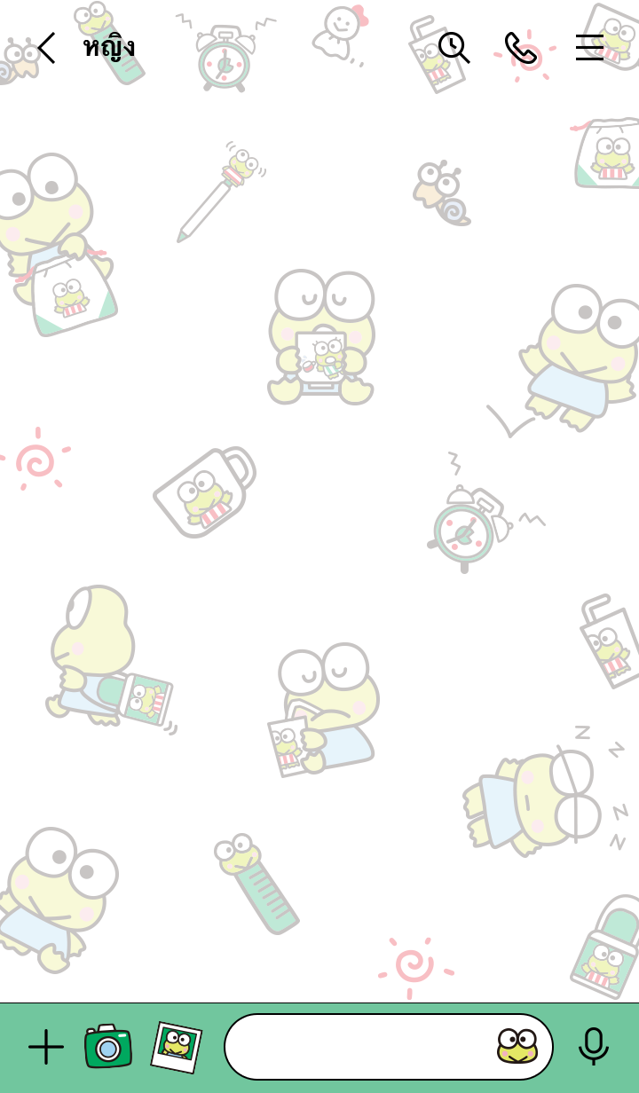 ธีม Keroppi กำลังเพลิดเพลินไปกับกู๊ดส์ Keroppi น่ารักน่าเอ็นดู♪ สีขาวและเขียวละมุนตา อ่านแชทง่าย! (จะมีการอัพเดตธีมเป็นระยะจนถึง 180 วันหลังสิ้นสุดการจำหน่าย)