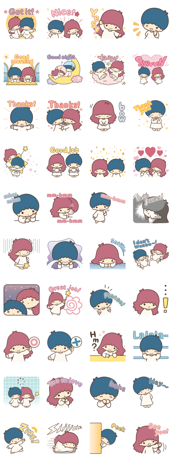 Comment: LittleTwinStars New Retro Stickers. Check out these new response stickers featuring Kiki and Lala in new retro colors! Use this set every day and they'll fill your chats with lively fun!