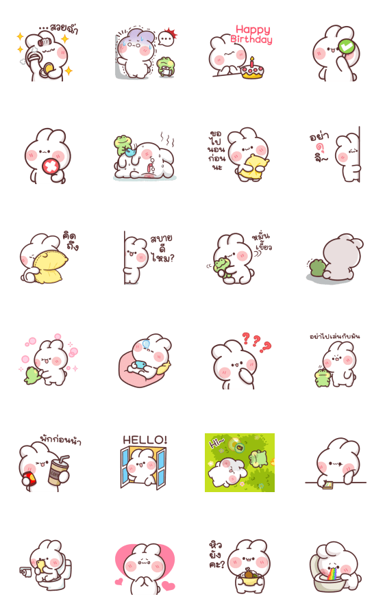 สติกเกอร์เอนิเมชั่น ต่ายหูโตน่ารักมีเสียง ชวนเพื่อนคุย พี่น้องสนิท คำพูดสนุก เพลิดเพลิน ในประจำวัน คุยไลน์