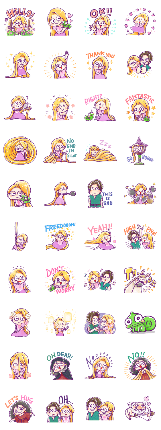 สติกเกอร์ "เจ้าหญิงราพันเซล" ฝีมือครีเอเตอร์ MOGU! ตัวละครมาพร้อมสีหน้าท่าทางหลากหลาย น่ารัก ใช้เพลิน♪